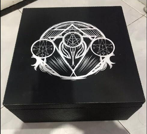 Livro da Lor do jogo e dos personagens de "O mito de Sataran" Feito em um semestre. A caixa, feita e desenhada a mão. Revestida de couro e por dentro com veludo.